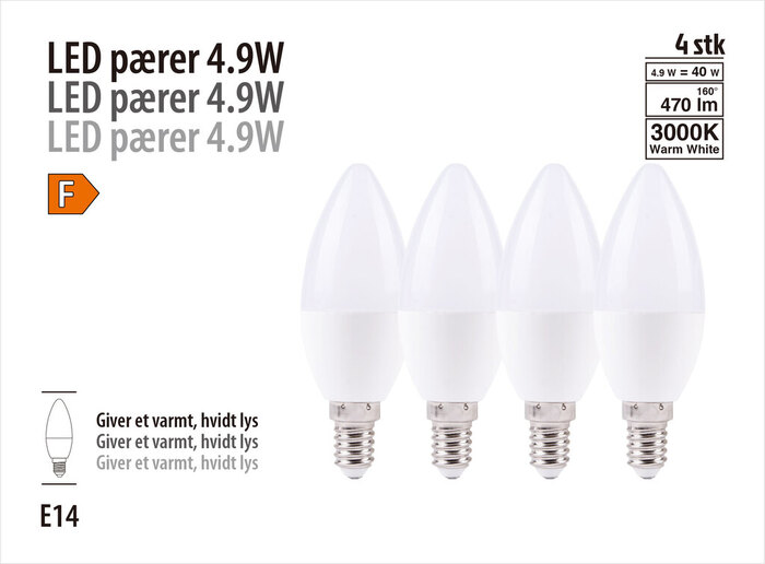 • Pakke med 4 stk. LED-sparepærer på 4,9 W