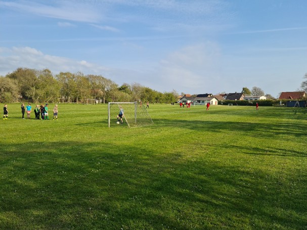 På den ene side hvor vi har et lille stykke hegn på nuværende tidspunkt, er der en grøft med vand til at dræne fodboldbanen. Den mark der ligger på den anden side, er samtidig tilgroet med et tjørnekrat og skyld i mange punkteringer af vores bolde, samtidig er det meget stikkende at bevæge sig ud efter boldene. På den anden side af banen har vi tæt bebyggelse. Der vil vi gerne etablere et nyt hegn, der kan forhindre bolde i at ”flyve” ind til naboerne og irritere dem. Derudover vil vi også gerne bibeholde vores gode naboskab.