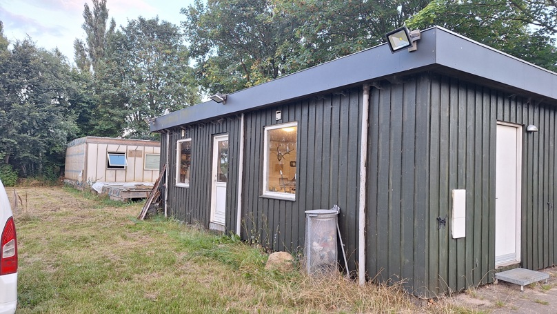 Uderum til foreningsaktiviteter for lille lokal jagtforening og spejdere: 32 m2 terrasse i forlængelse af klubhuset.