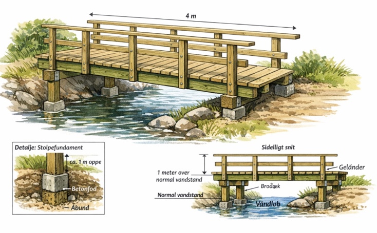 07. marts 2026Ansøgning om materialestøtte til fornyelse af infrastruktur ved Elling Å og Bangsbo Å Ansøger: Lystfiskerforeningen for Frederikshavn og Omegn Dato: 7. marts 2026 Introduktion Vi søger hermed om støtte til indkøb af materialer til produktion og opsætning af to nye broer samt fem spang. Projektet skal sikre, at vores medlemmer fortsat kan færdes sikkert på begge sider af Elling Å og Bangsbo Å, som er centrale dele af vores fiskevand. Om foreningen Vores lystfiskerforening er en aktiv del af friluftslivet i Frederikshavn Kommune. Vi råder over fiskeretten til ca. 125 km åvand, som vi plejer og vedligeholder. Foreningen tæller i dag ca. 200 medlemmer, hvoraf vi er særligt stolte af vores 50 juniorer og 10 kvindelige fiskere. Vi vægter det sociale fællesskab og naturoplevelsen højt, men det kræver, at adgangsforholdene er i orden. Projektets formål og nødvendighed Vores nuværende broer og spang er efterhånden 30 år gamle. Tidens tand og det fugtige miljø har betydet, at de i dag er i stærkt forfald. Flere af dem er allerede taget ud af brug af sikkerhedsmæssige årsager, hvilket begrænser adgangen til fiskevandet markant. For at sikre at både vores seniorer, juniorer og kvindelige medlemmer kan krydse åerne sikkert og få det fulde udbytte af vores 125 km fiskevand, er en total udskiftning nødvendig. Specifikation af ansøgningen Vi søger om støtte til materialer (primært holdbart træ/tømmer, fæstningsbeslag og skridsikring) til: 2 stk. Broer (til de bredere passager ved Elling og Bangsbo Å) 5 stk. Spang (til mindre passager og grøfter) Selve arbejdet med produktion og opsætning udføres af foreningens medlemmer som frivillig arbejdskraft. Vi har ekspertisen i egne rækker, men mangler de økonomiske midler til de rå materialer. Afrunding Nye broer vil ikke blot forbedre sikkerheden, men også sikre, at vi kan fastholde og tiltrække nye medlemmer til lystfiskeriet i Frederikshavn Kommune. Vi håber på en positiv besvarelse. Med venlig hilsen, Bjarne Walentin Kasserer