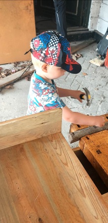 I Gjerrild vil vi gerne gøre det muligt at gå til tømrer! Det er ren lykke at se et barn med julestjerner i øjnene, når vedkommende får lov at hamre og save. Vi vil gerne kombinere denne lykke med fællesskab og læring på tværs af alder. Derfor vil vi gerne arrangere "byg og hyg", hvor fx pensionerede tømrer skal lære børn at bygge. De største børn kan være med til selve byggeriet og de mindste kan fx lave fuglehuse.