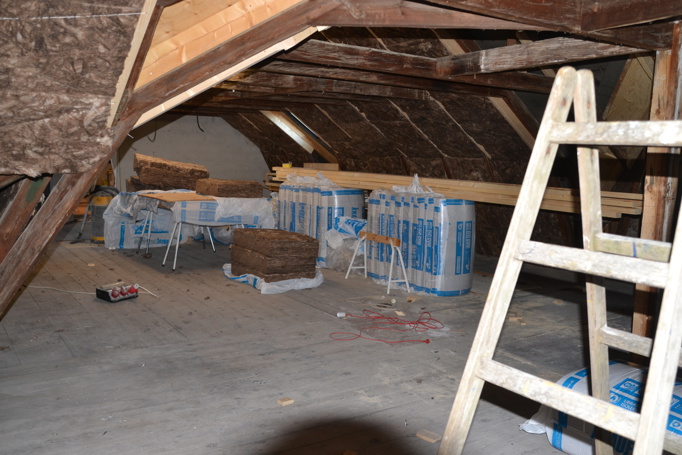 Vi er en 34 år gammel modeltog klub ( SMJK 87 ), som har ca. 20 medlemmer i øjeblikket. Vi havde indtil 31/12 2019 til huse i Svendborg kommune, men da kommunen skulle bruge lokalerne til andre formål, blev vi sagt op. Kommunen havde ikke andre lokaler at tilbyde. Vi var heldige da vi henvendte os til Fåborg/Midtfyn kommune. De tilbød 1. salen på Korinth gamle station. Perfekt da Sydfynske Veteranjernbane kører strækningen fra Fåborg til Korinth. Lejemålet bestod af en lille lejlighed og et stort uisoleret loftrum på ca. 120m2. Lejligheden har vi renoveret for egne midler og har samtidig søgt kommunale puljer til isolering af loftet, hvilket er lykkedes. Vi er nået så langt at tømmeren er gået i gang med isolering og beklædning af loftrummet. Så vi mangler nu materialer, så vi kan begynde at bygge modulerne.