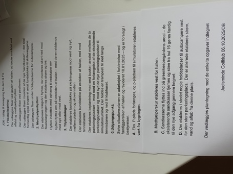 Vores frivillige medhjælpere fortjener en hytte, der kan aflåses og hvor de kan have deres redskaber og kan arbejde uforstyrret. De frivillige medhjælpere står for vedligeholdelse af alle bygninger med rengøring, maling og reparationer. Vi har ca. 140 frivillige medhjælpere ud af i alt 700 medlemmer. Mange er håndværksuddannede og derfor vil arbejdet blive udført af de frivillige medlemmer. Tilplantningerne skal gøre hele området mere grønt, naturvenligt og lave en afgræsning til greenkeepernes område. Det er med til at sikre stien for golfspillerne fra vores hul 16 til hul 17. Der kommer ca. 15.000 spillere årligt forbi på denne stig. Projektet udføres i 1. og 2. kvartal 2026 og gennemføres af klubbens frivillige medlemmer. Vi håber, at Jem & Fix Fonden vil se velvilligt på vores ansøgning og støtte et projekt, der vil bidrage til en forbedret oplevelse for klubbens medlemmer, gæster og de mange turister, der besøge Juelsminde området, især om sommeren.