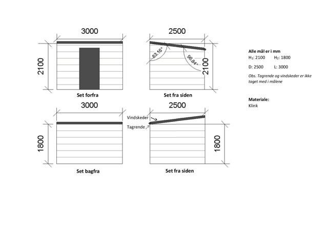 Vi vedhæfter foto af vores nuværende løsning samt et oversigt, som viser den planlagte placering af materiale skuret.
