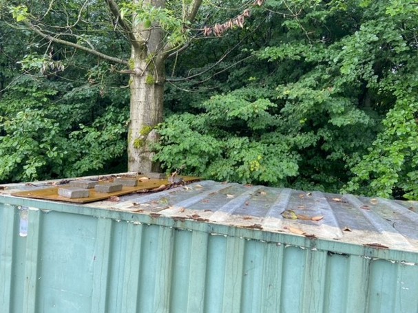 Tag over hullet medlemscontainer, samt et lille halvtag foran.